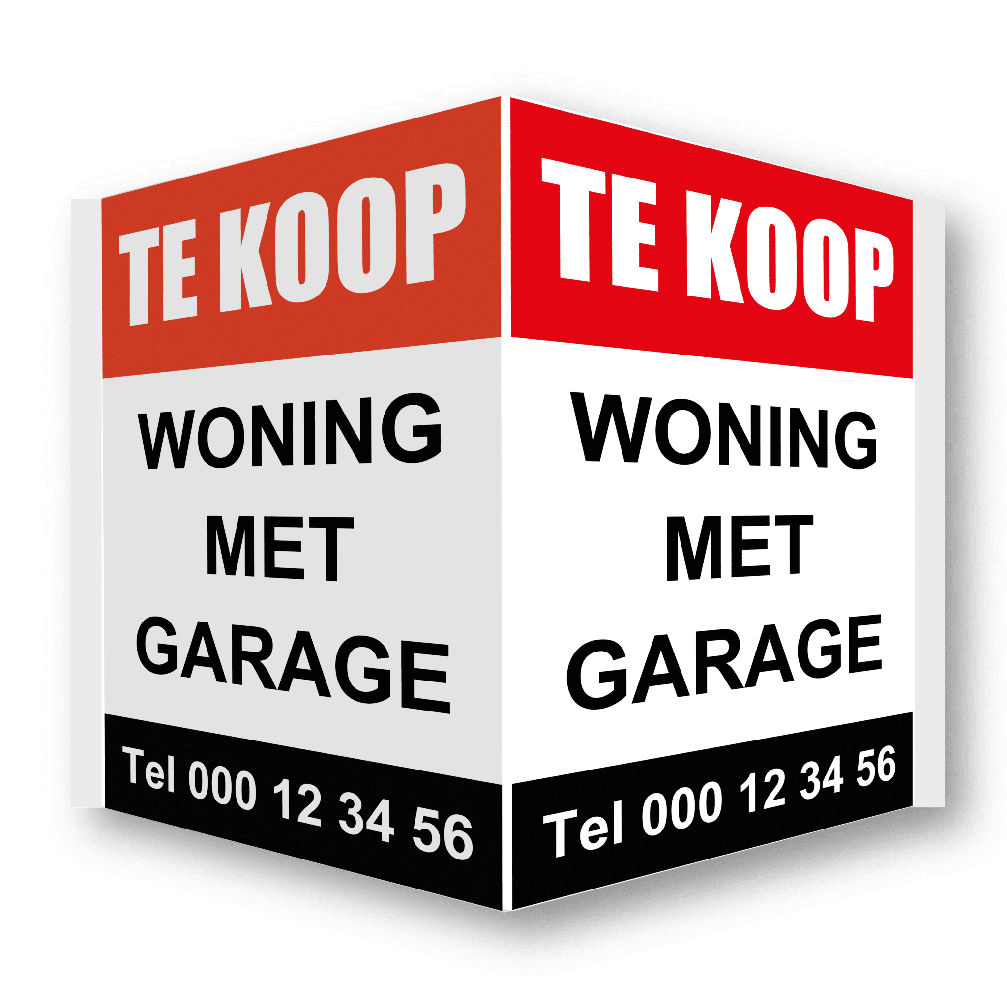 Deze borden worden vooral door immokantoren gebruikt om vastgoed te koop of te huur te zetten. Deze worden meestal op de raam bevestigd maar kunnen evenwel op een andere constructie bevestigd worden. Al onze v-borden worden kant en klaar afgeleverd met zeer sterke kleeftape (3M) en plooilijnen.